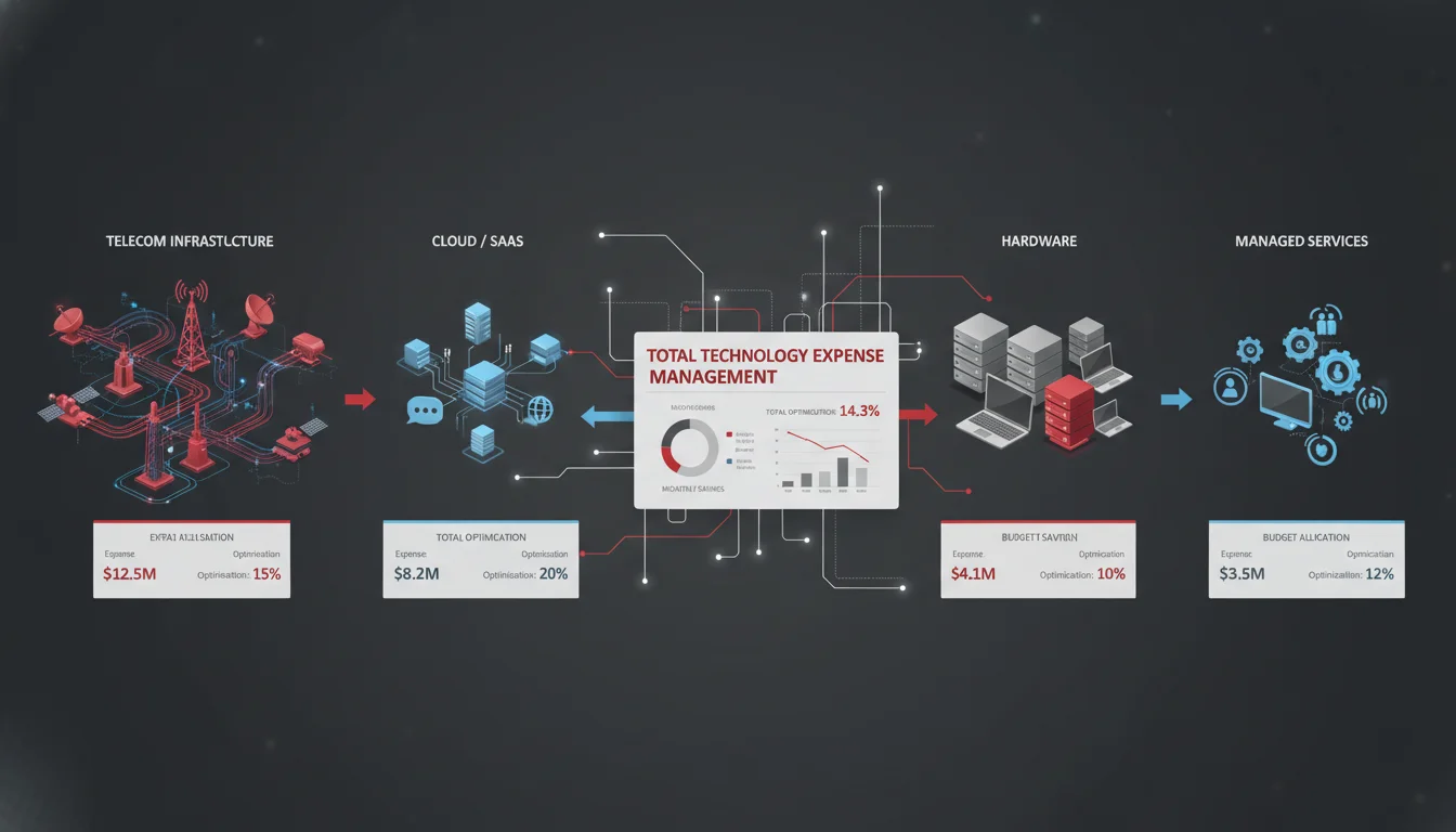 Technology expense management (TEM) has evolved far beyond simple IT asset tracking. Today's TEM encompasses four major categories: telecom services, SaaS and cloud platforms, hardware and infrastructure, and IT professional services. Each category presents unique management challenges, different optimization opportunities, and varying levels of complexity.